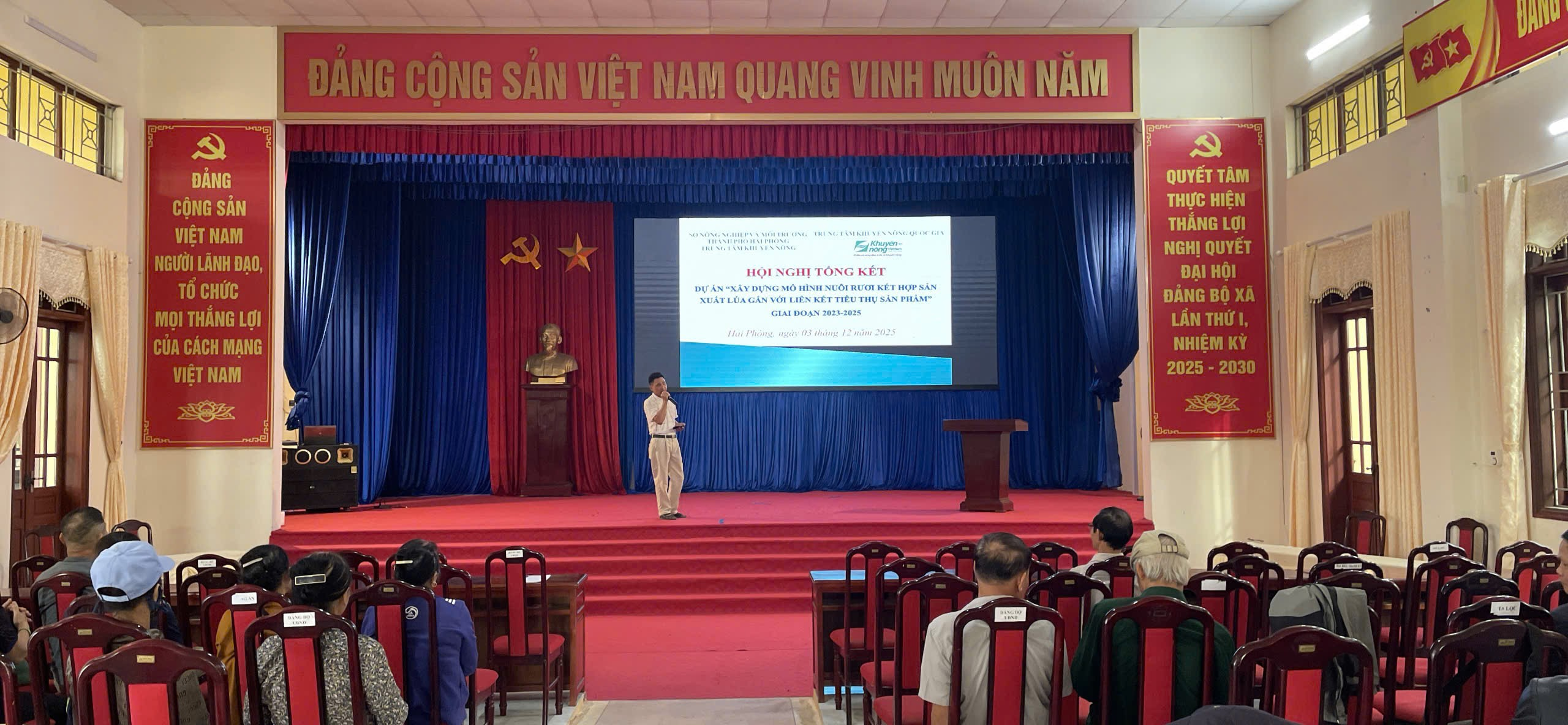 Ngày 03/12/2025, tại Nhà văn hóa thôn Thanh Kỳ, Trung tâm Khuyến nông Hải Phòng đã tổ chức Hội nghị tổng kết Dự án “Xây dựng mô hình nuôi rươi kết hợp sản xuất lúa gắn với liên kết tiêu thụ sản phẩm” giai đoạn 2023-2025. Hội nghị có sự tham dự của đại diện lãnh đạoTrung tâm Khuyến nông Hưng Yên; đại diện UBND, phòng Kinh tế, Trung tâm Dịch vụ sự nghiệp công các địa phương; các doanh nghiệp tiêu thụ rươi - lúa; HTX nông nghiệp nơi triển khai mô hình cùng đông đảo hộ nông dân tham gia và nông dân ngoài mô hình. Đây là hội nghị quan trọng nhằm đánh giá toàn diện kết quả và hiệu quả của mô hình sau 3 năm thực hiện.