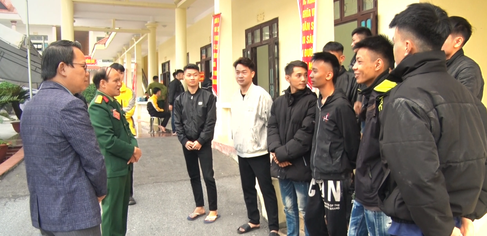 Tại khu vực khám tuyển, đồng chí Phó bí thư đảng uỷ - CHủ tịch UBND xã thay mặt Đảng uỷ, HĐND, UBND xã ân cần hỏi thăm sức khoẻ, gia cảnh của các nam thanh niên. Đồng thời mong muốn các thanh niên hãy phát huy truyền thống của quê hương, nêu cao tinh thần gương mẫu, trách nhiệm, sẵn sàng lên đường bảo vệ tổ quốc.