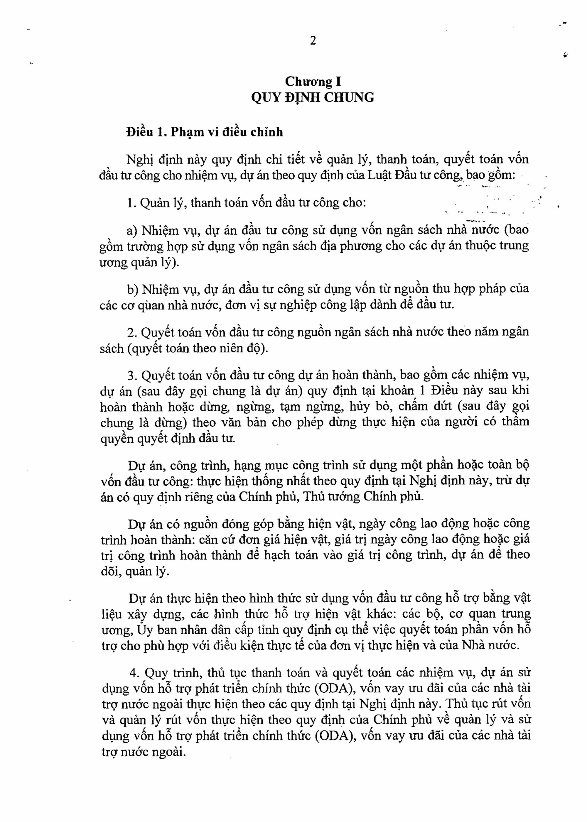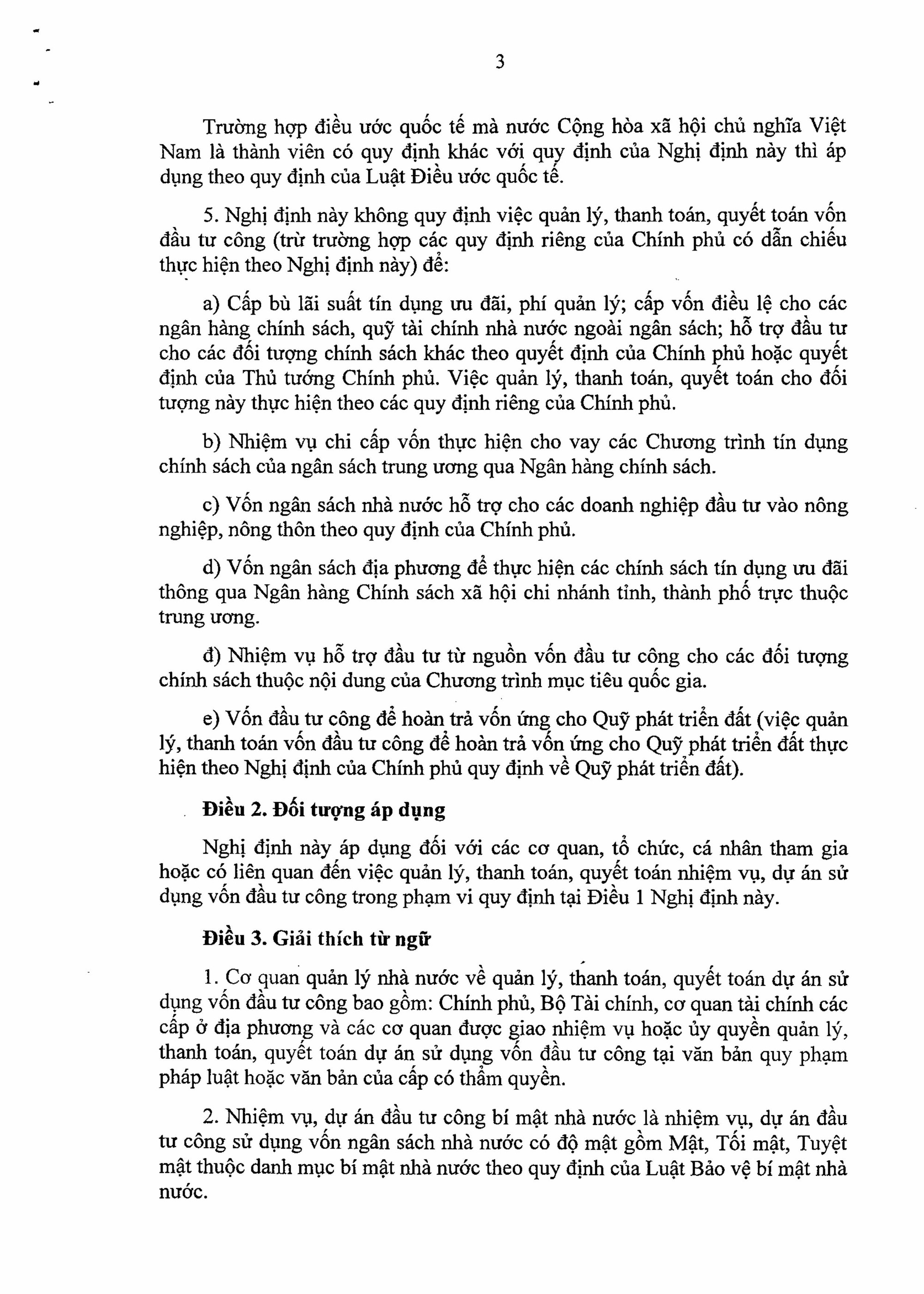 Nghị định này không quy định việc quản lý, thanh toán, quyết toán vốn đầu tư công (trừ trường hợp các quy định riêng của Chính phủ có dẫn chiếu thực hiện theo Nghị định này) để: