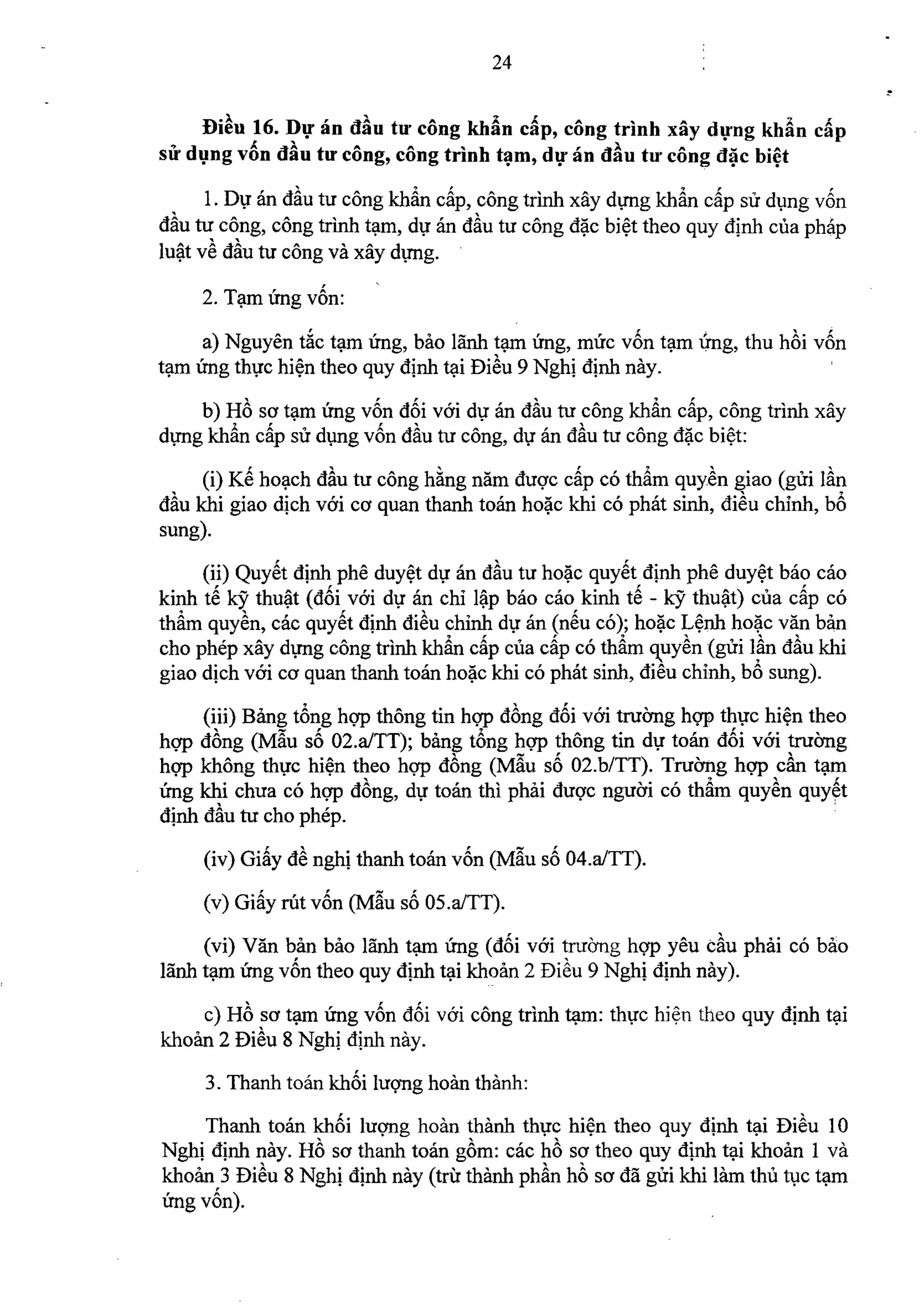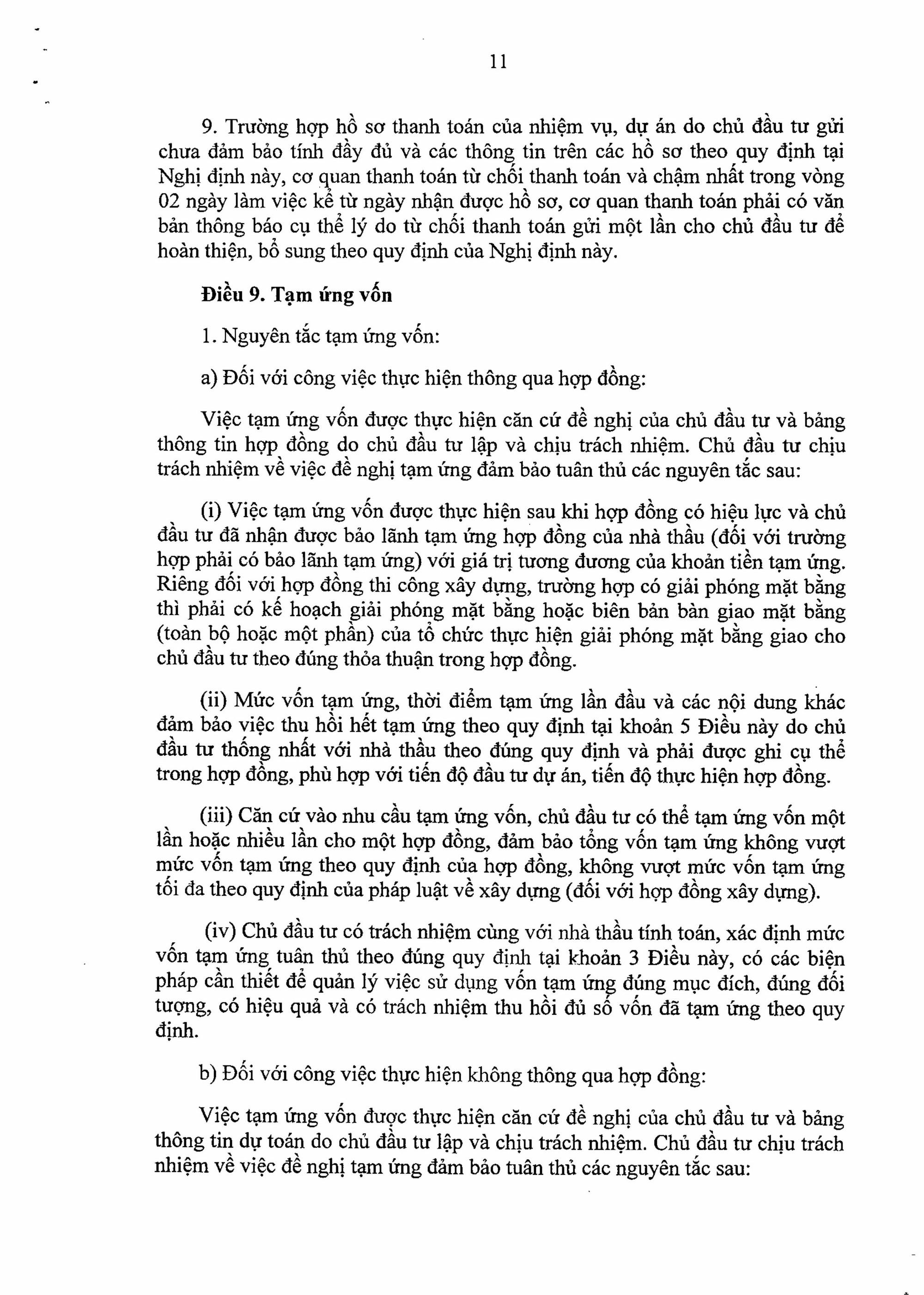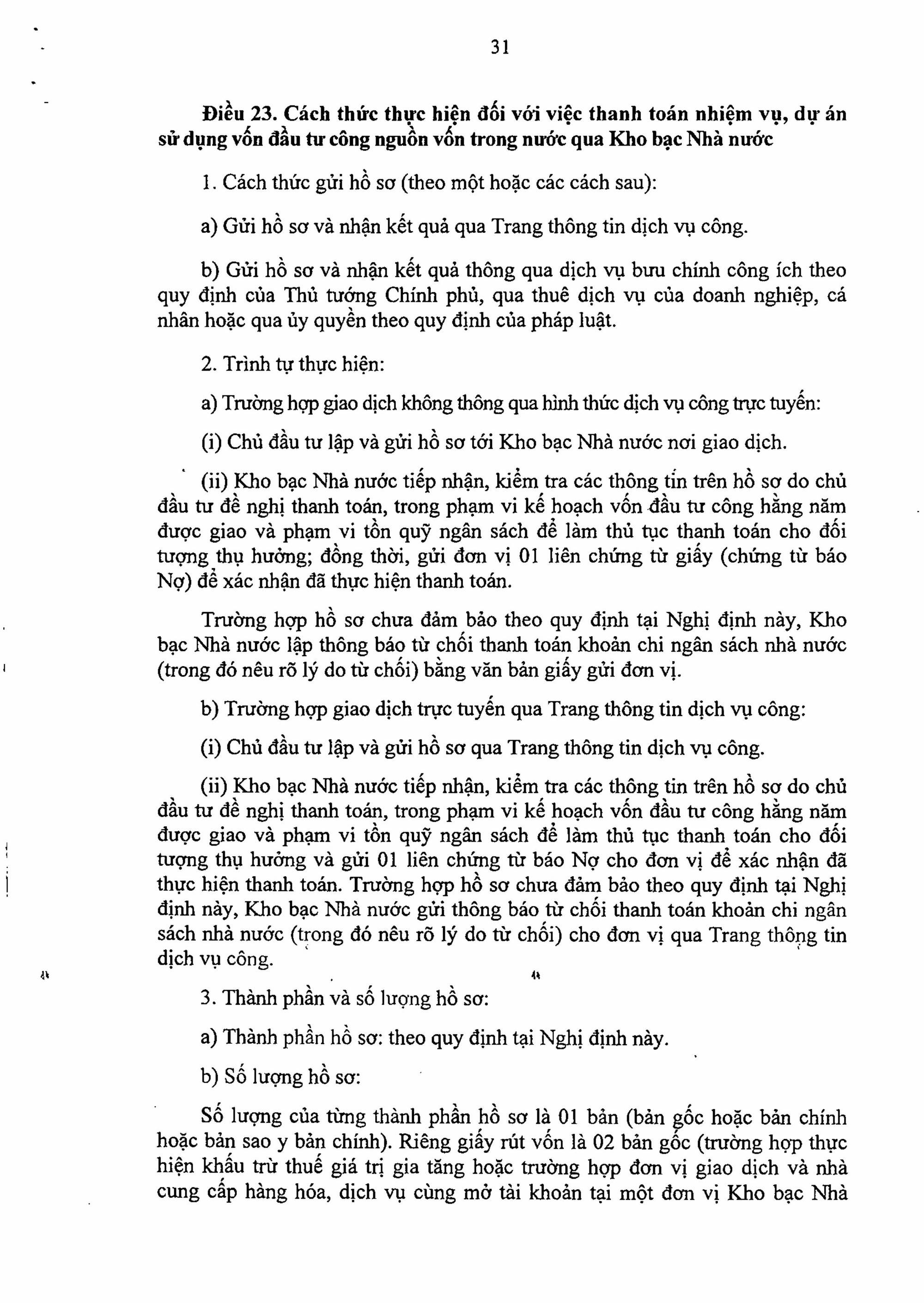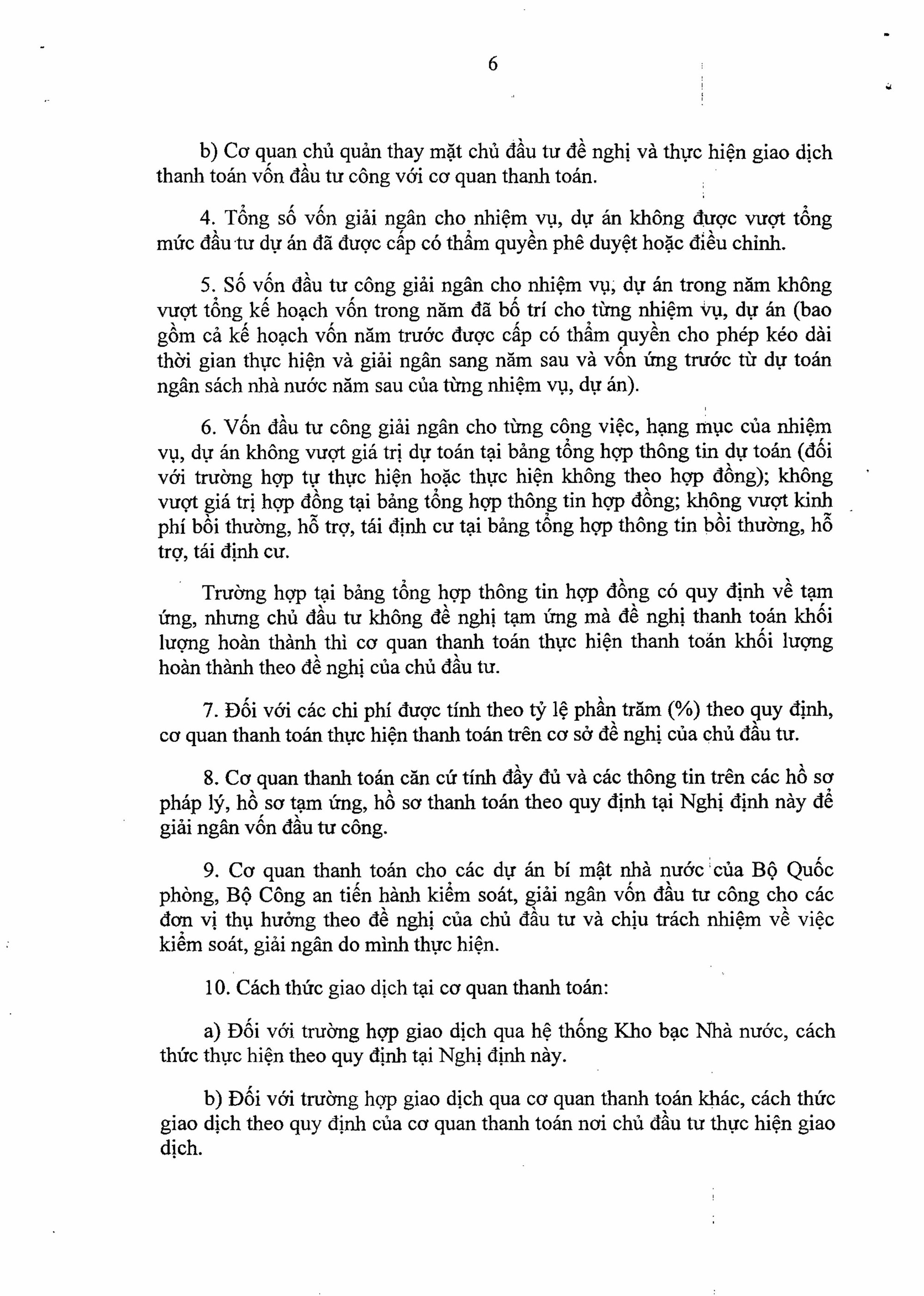 Cơ quan thanh toán căn cứ tính đầy đủ và các thông tin trên các hồ sơ pháp lý, hồ sơ tạm ứng, hồ sơ thanh toán theo quy định tại Nghị định này để giải ngân vốn đầu tư công.
