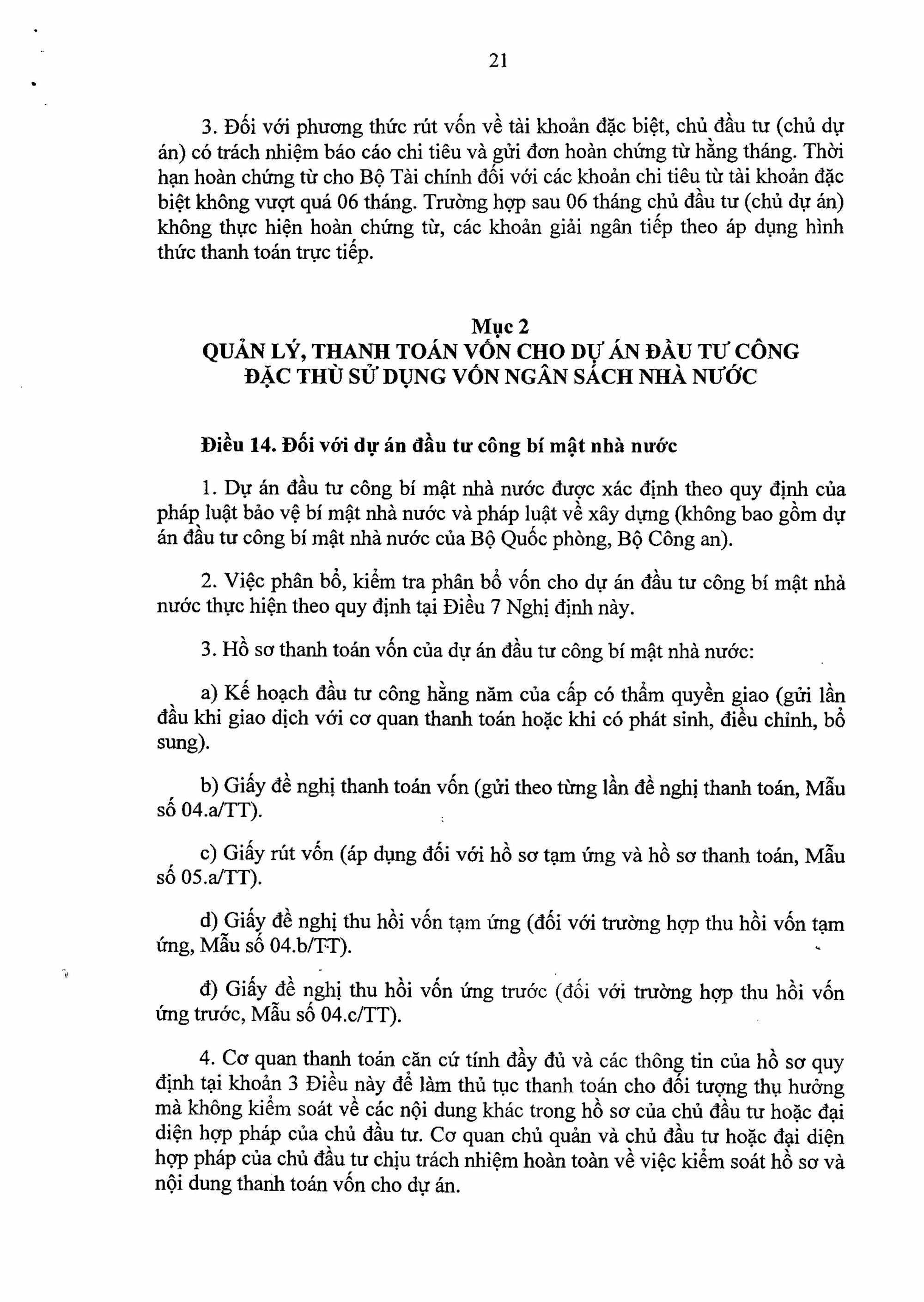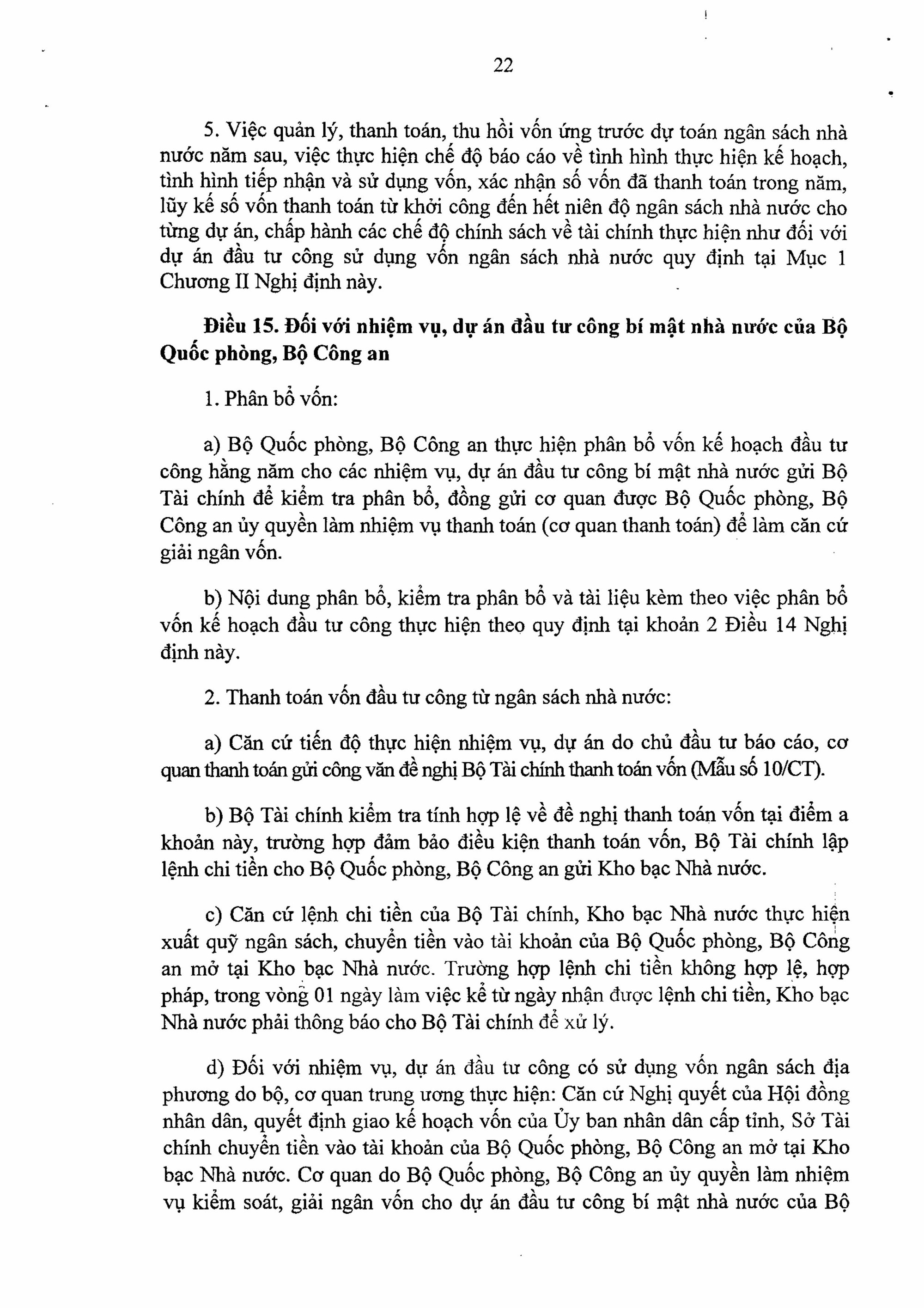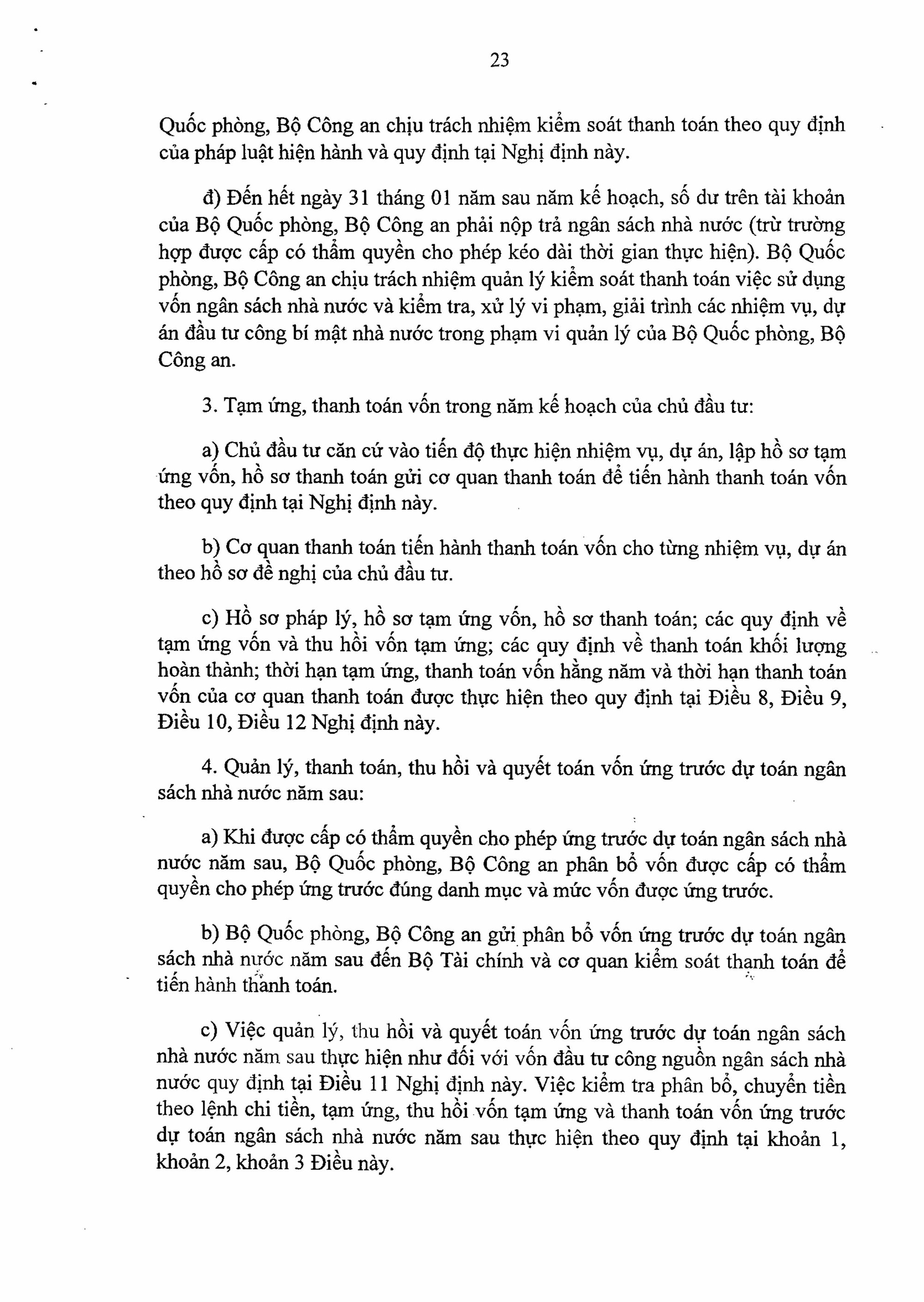 Cơ quan thanh toán cho các dự án bí mật nhà nước của Bộ Quốc phòng, Bộ Công an tiến hành kiểm soát, giải ngân vốn đầu tư công cho các đơn vị thụ hưởng theo đề nghị của chủ đầu tư và chịu trách nhiệm về việc kiểm soát, giải ngân do mình thực hiện.