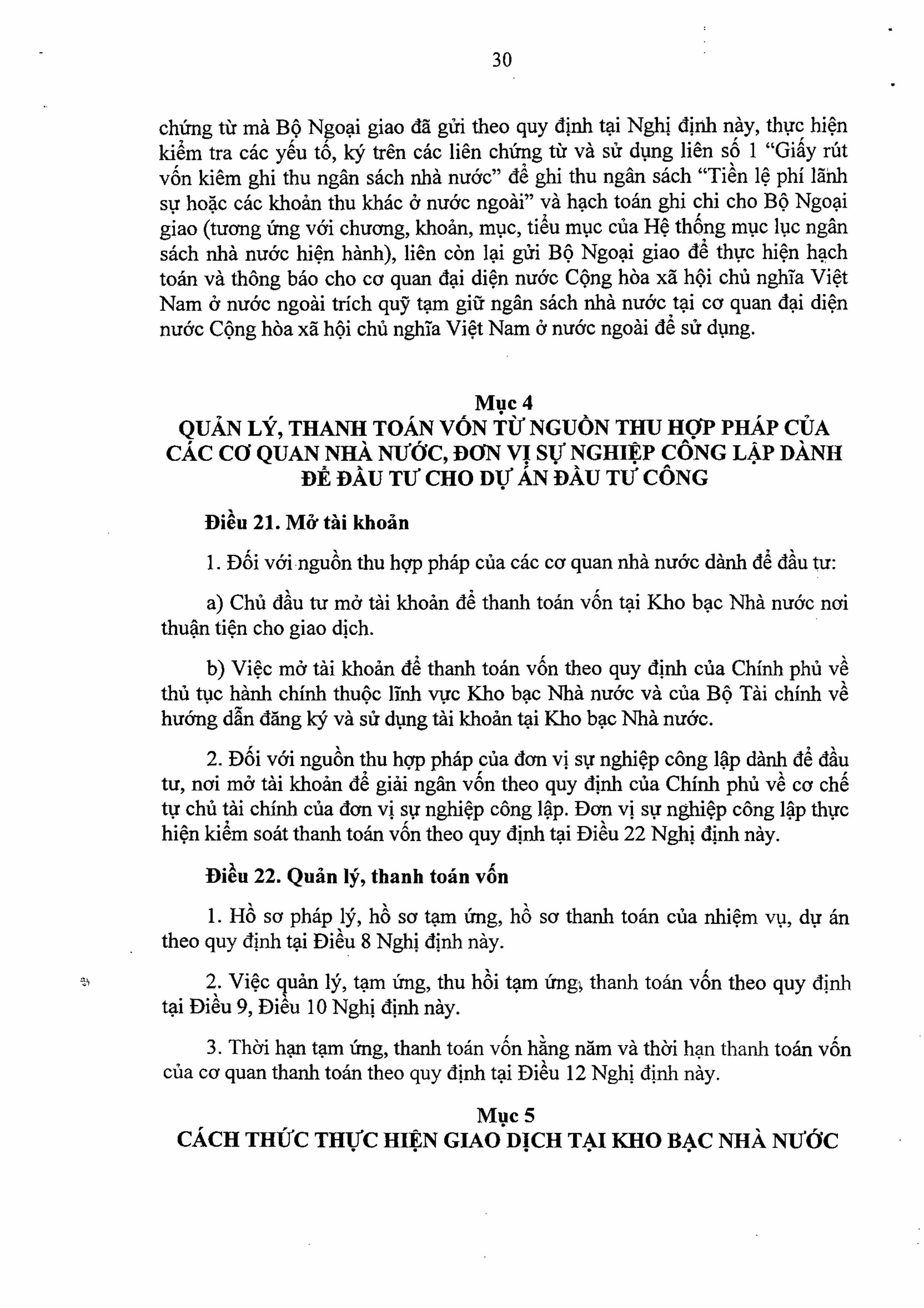 4- Quy trình, thủ tục thanh toán và quyết toán các nhiệm vụ, dự án sử dụng vốn hỗ trợ phát triển chính thức (ODA), vốn vay ưu đãi của các nhà tài trợ nước ngoài thực hiện theo các quy định tại Nghị định này.