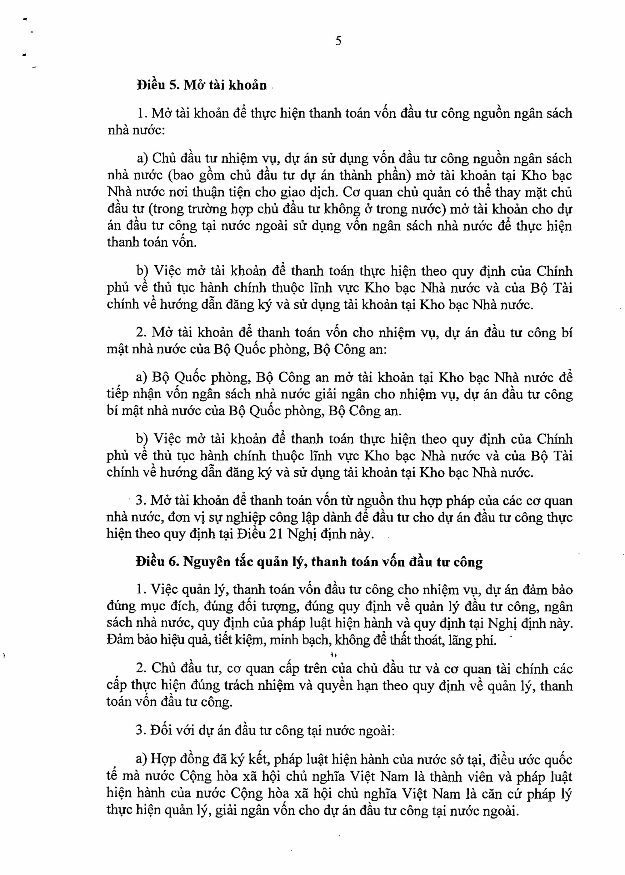 Việc quản lý, thanh toán vốn đầu tư công cho nhiệm vụ, dự án đảm bảo đúng mục đích, đúng đối tượng, đúng quy định về quản lý đầu tư công, ngân sách nhà nước, quy định của pháp luật hiện hành và quy định tại Nghị định này. Đảm bảo hiệu quả, tiết kiệm, minh bạch, không để thất thoát, lãng phí.