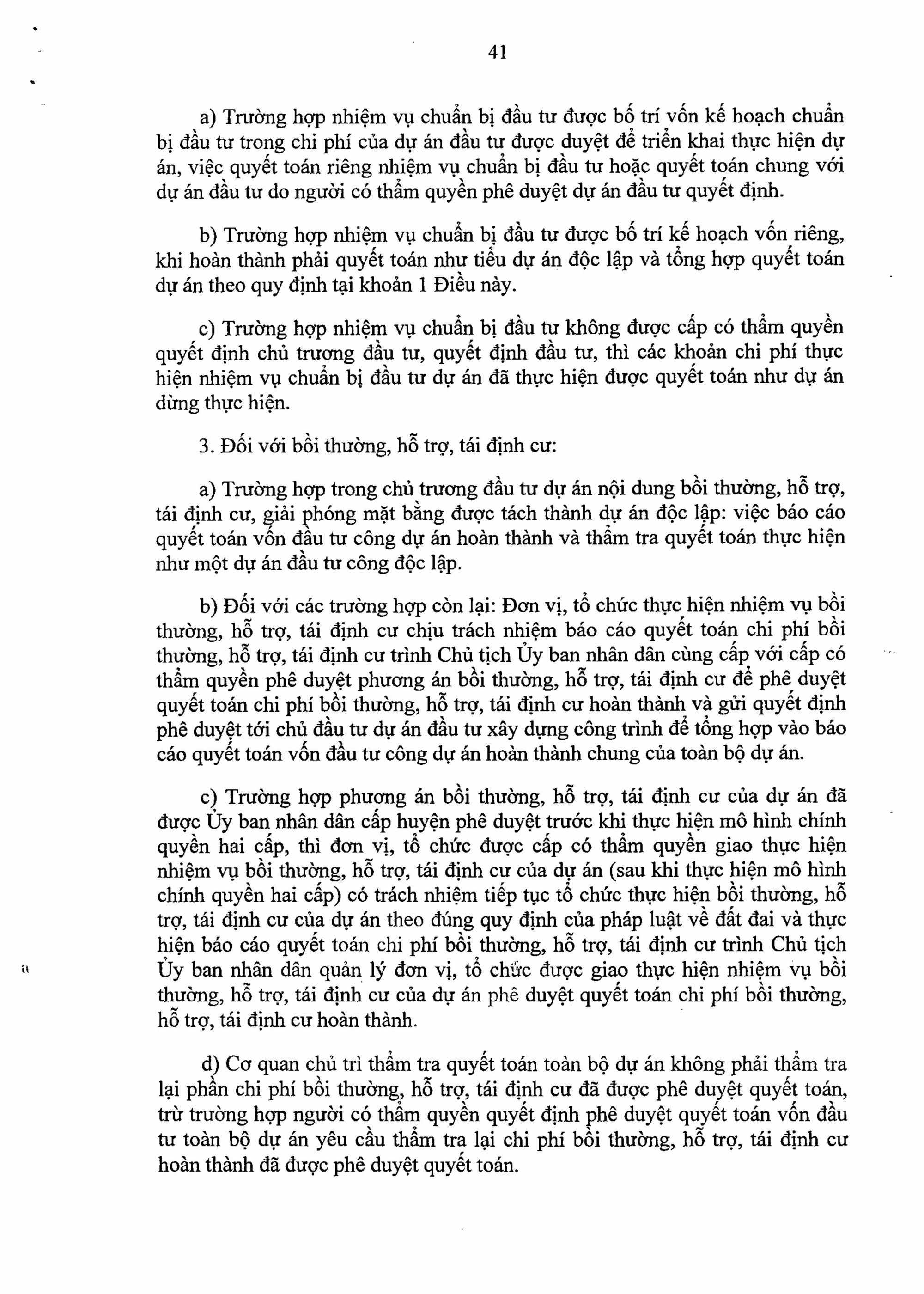 Dự án thực hiện theo hình thức sử dụng vốn đầu tư công hỗ trợ bằng vật liệu xây dựng, các hình thức hỗ trợ hiện vật khác: các bộ, cơ quan trung ương, Ủy ban nhân dân cấp tỉnh quy định cụ thể việc quyết toán phần vốn hỗ trợ cho phù hợp với điều kiện thực tế của đơn vị thực hiện và của Nhà nước.