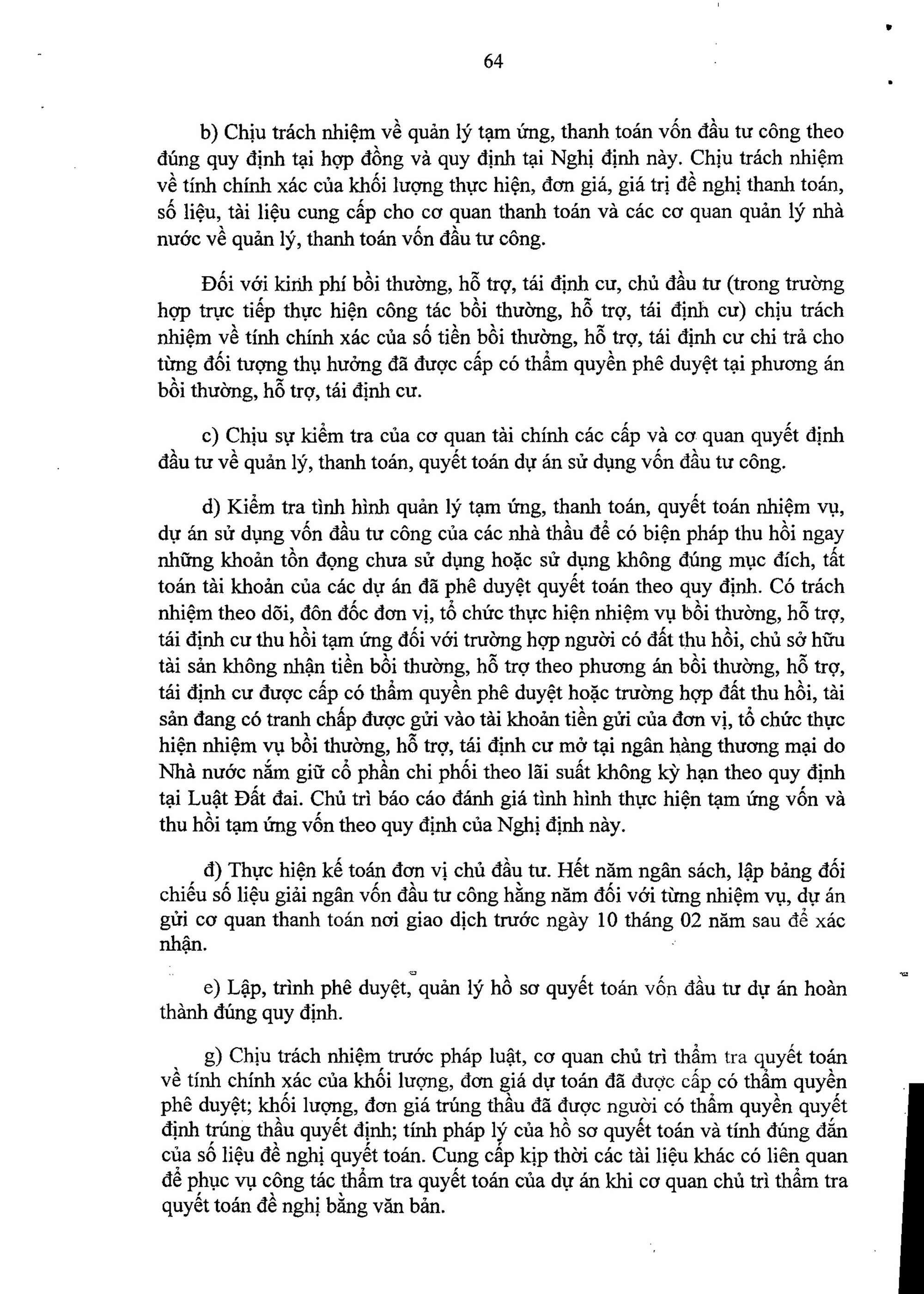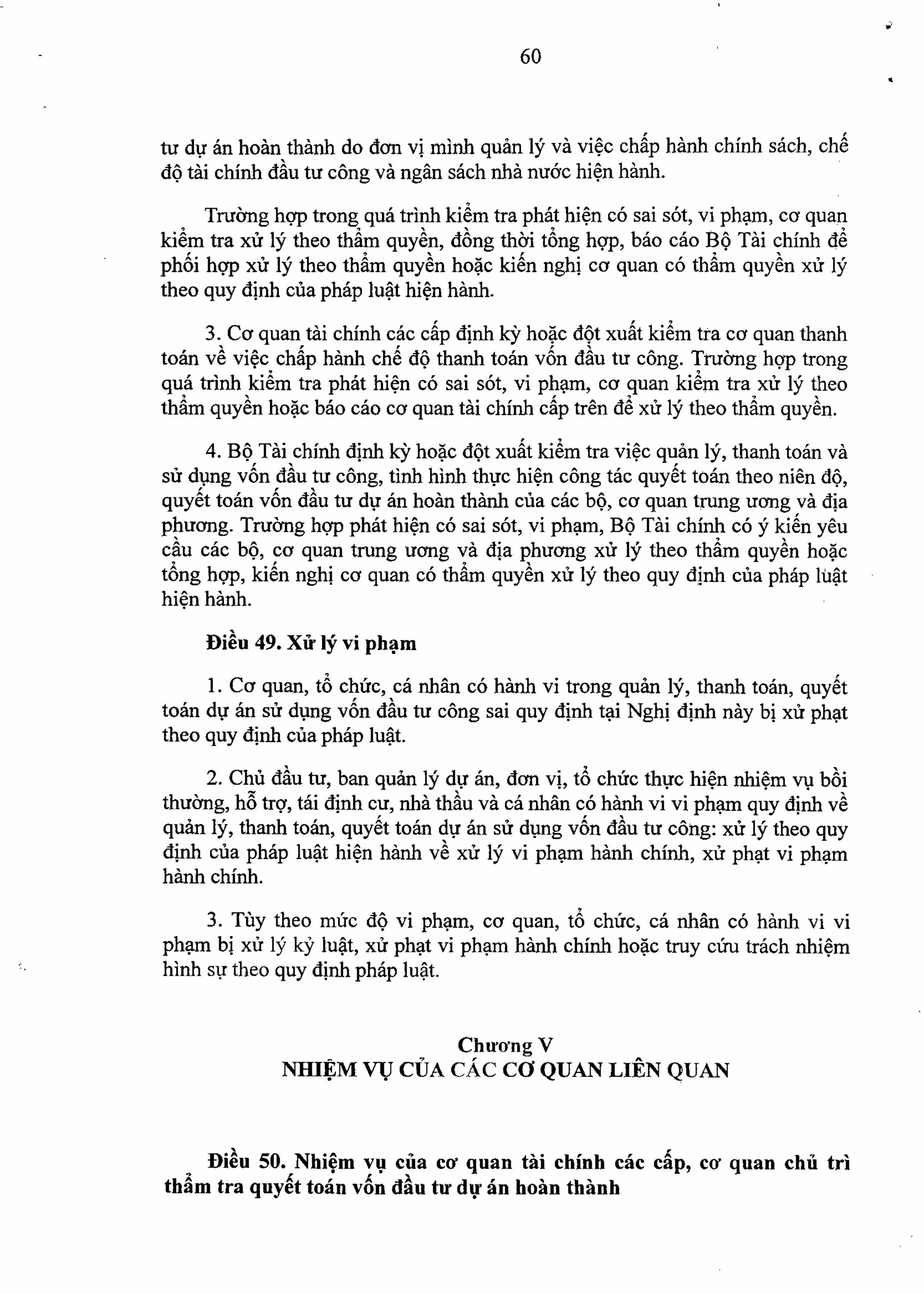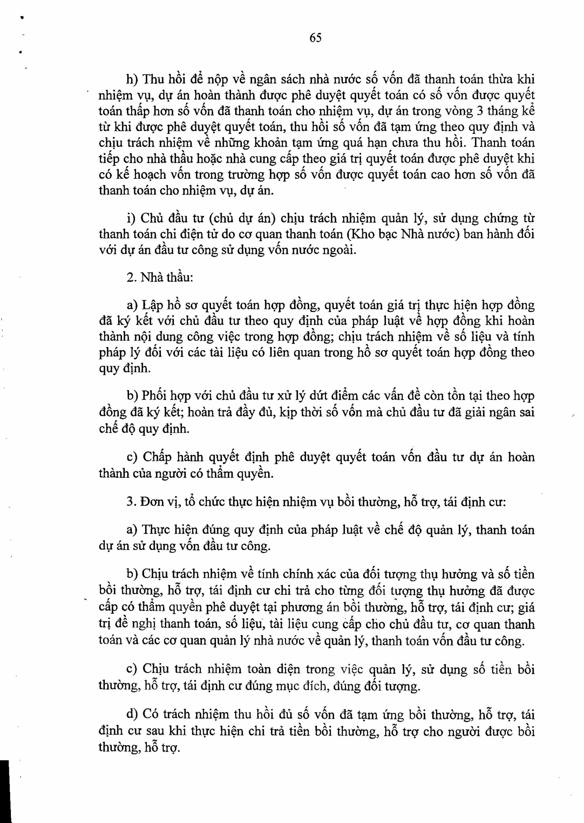Chủ đầu tư, cơ quan cấp trên của chủ đầu tư và cơ quan tài chính các cấp thực hiện đúng trách nhiệm và quyền hạn theo quy định về quản lý, thanh toán vốn đầu tư công.