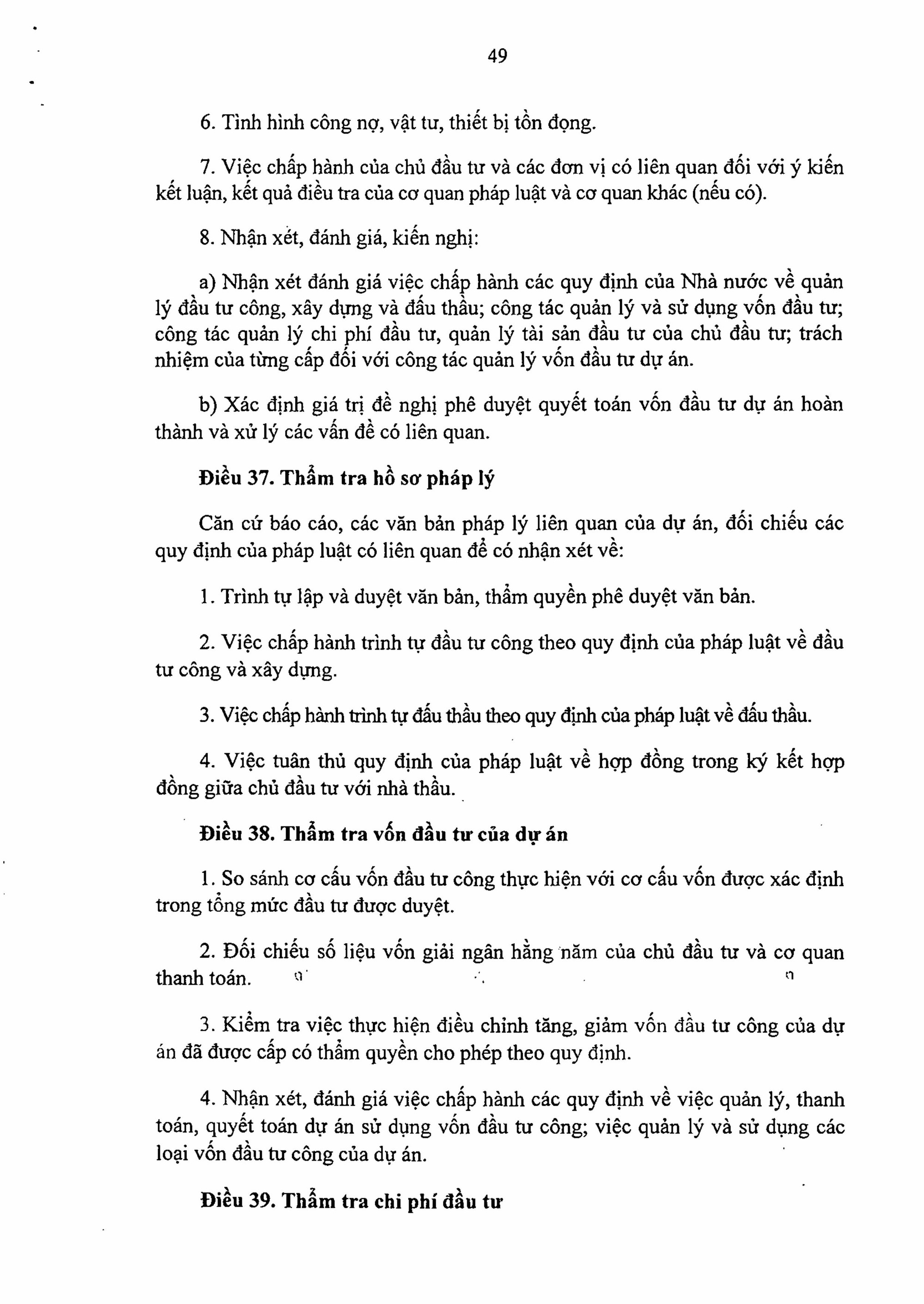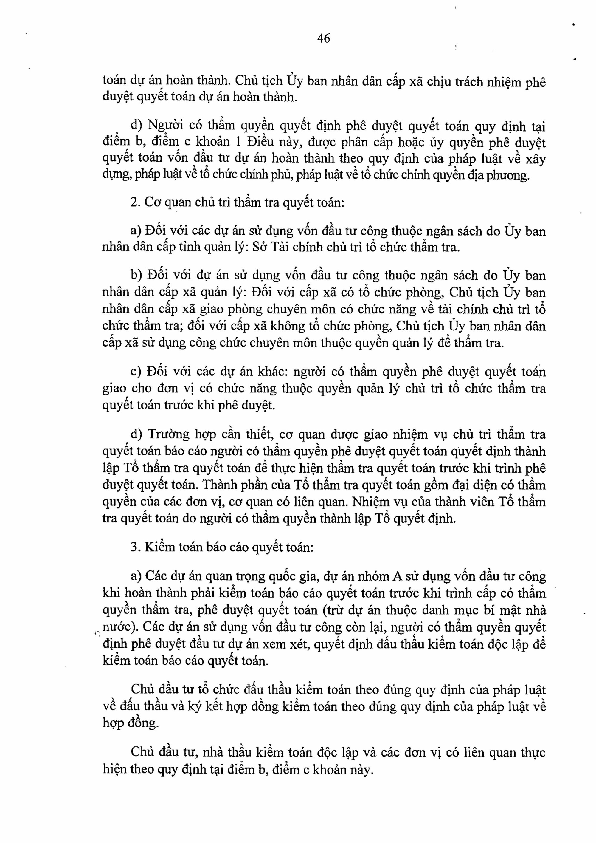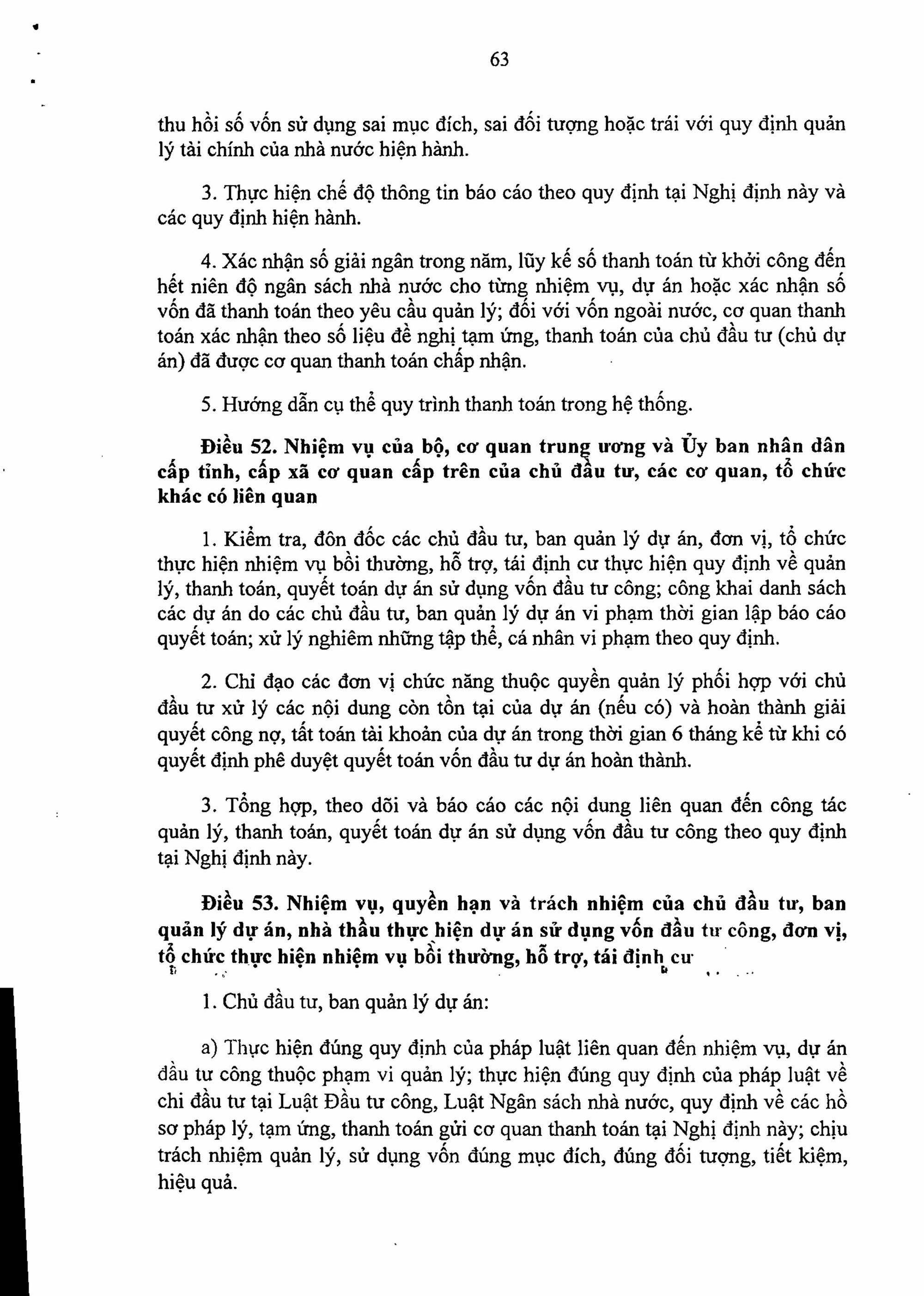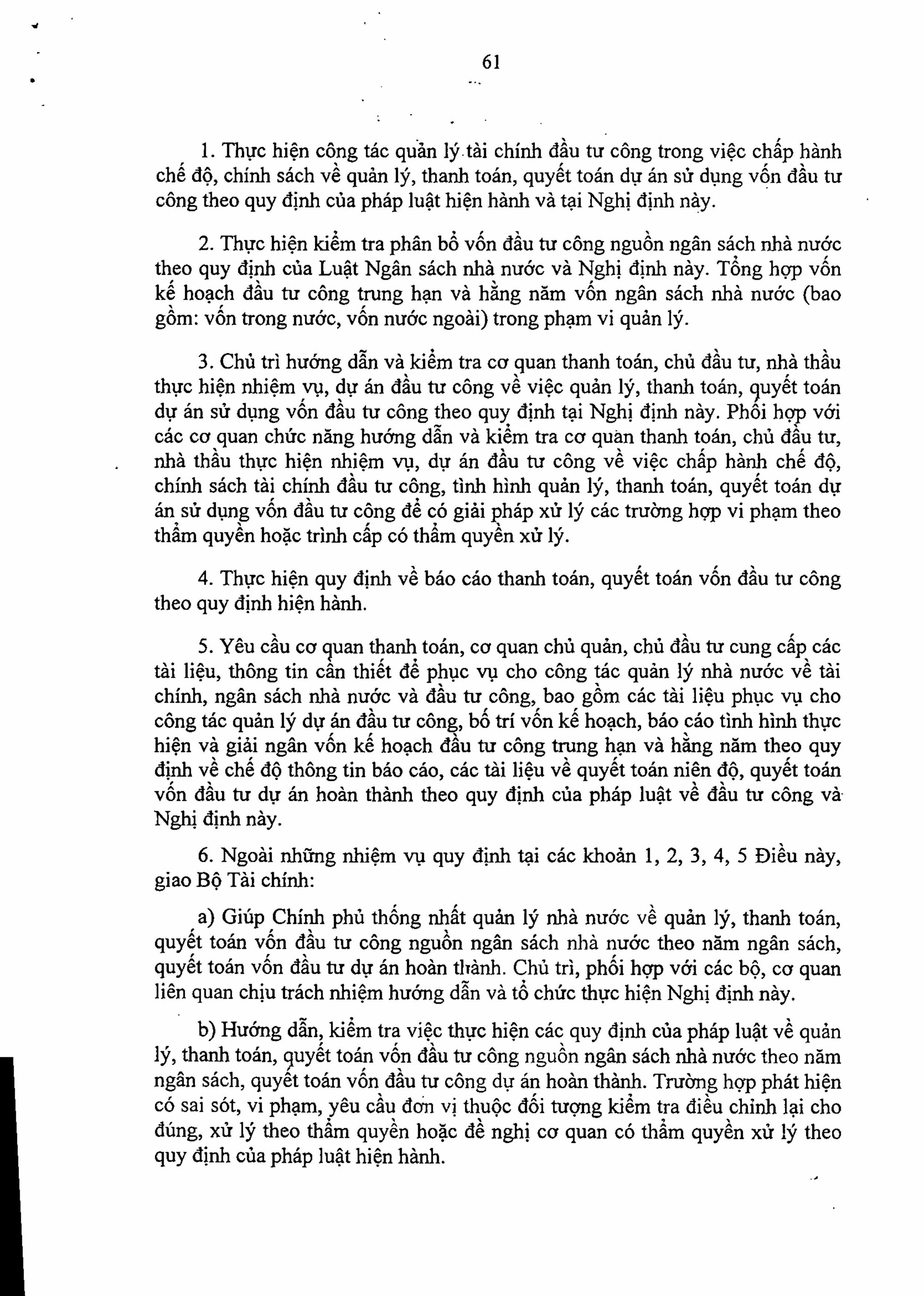 Chủ đầu tư, cơ quan cấp trên của chủ đầu tư và cơ quan tài chính các cấp thực hiện đúng trách nhiệm và quyền hạn theo quy định về quản lý, thanh toán vốn đầu tư công.