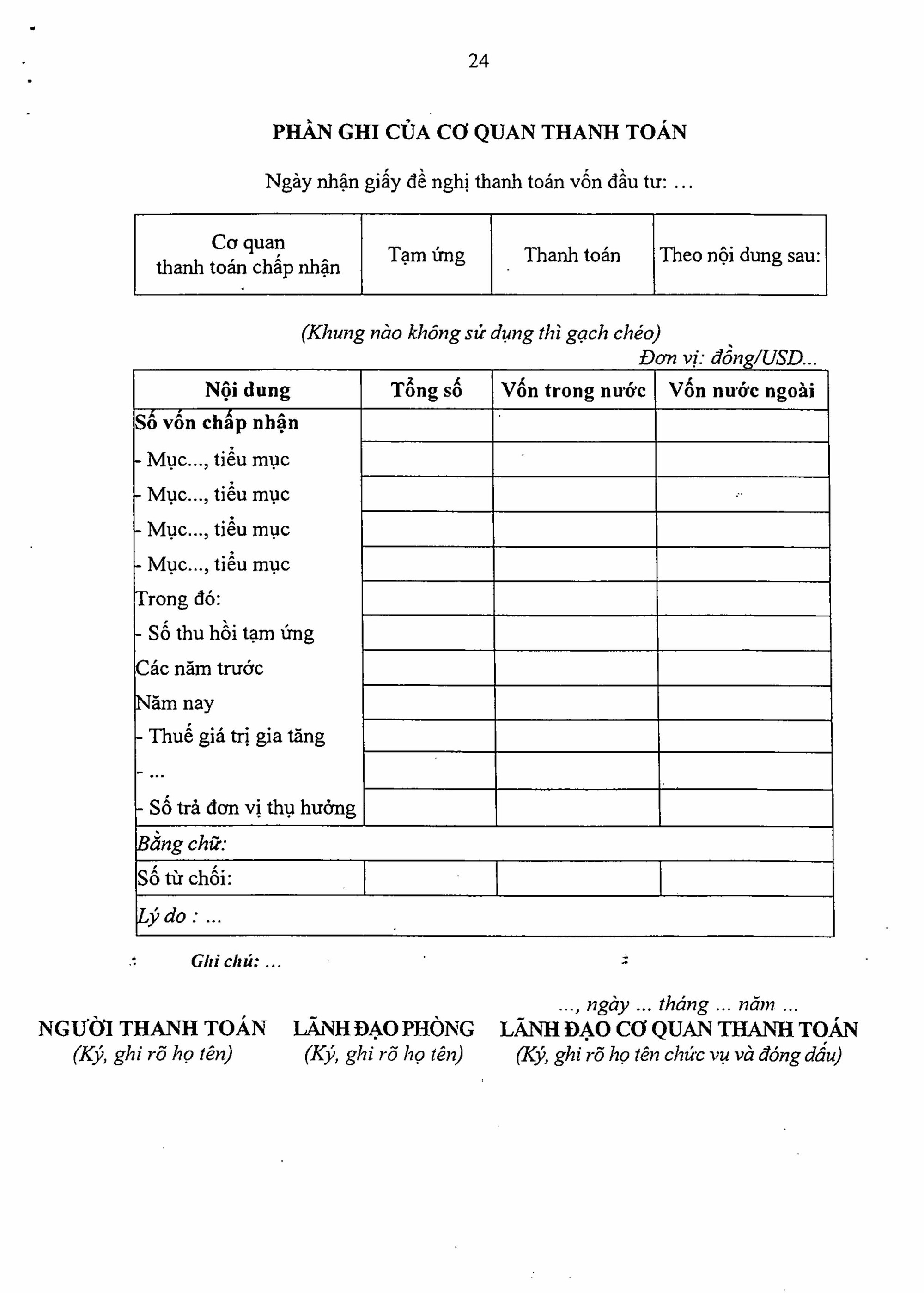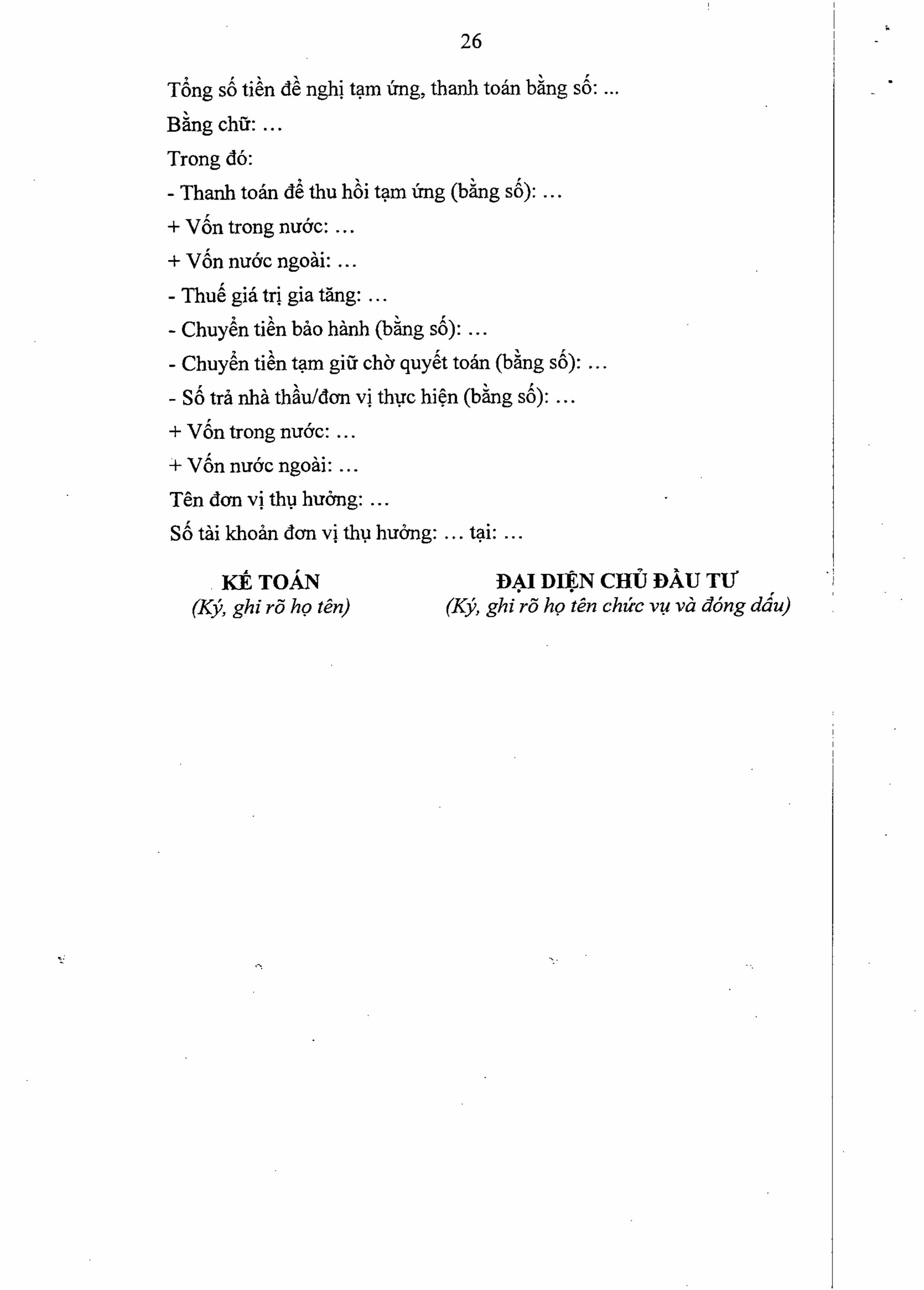 Đối với các chi phí được tính theo tỷ lệ phần trăm (%) theo quy định, cơ quan thanh toán thực hiện thanh toán trên cơ sở đề nghị của chủ đầu tư.