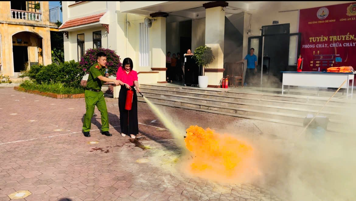 Công an xã Chí Minh tuyên truyền, thực hành kỹ năng PCCC&CNCH tại trường THCS Chí Minh